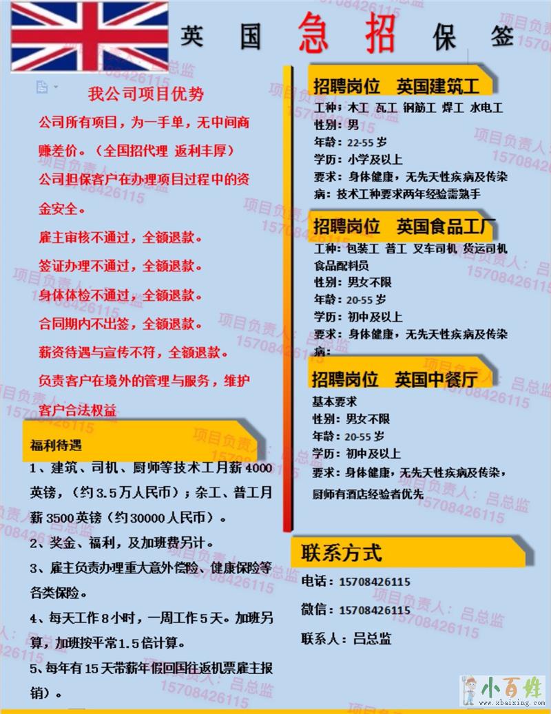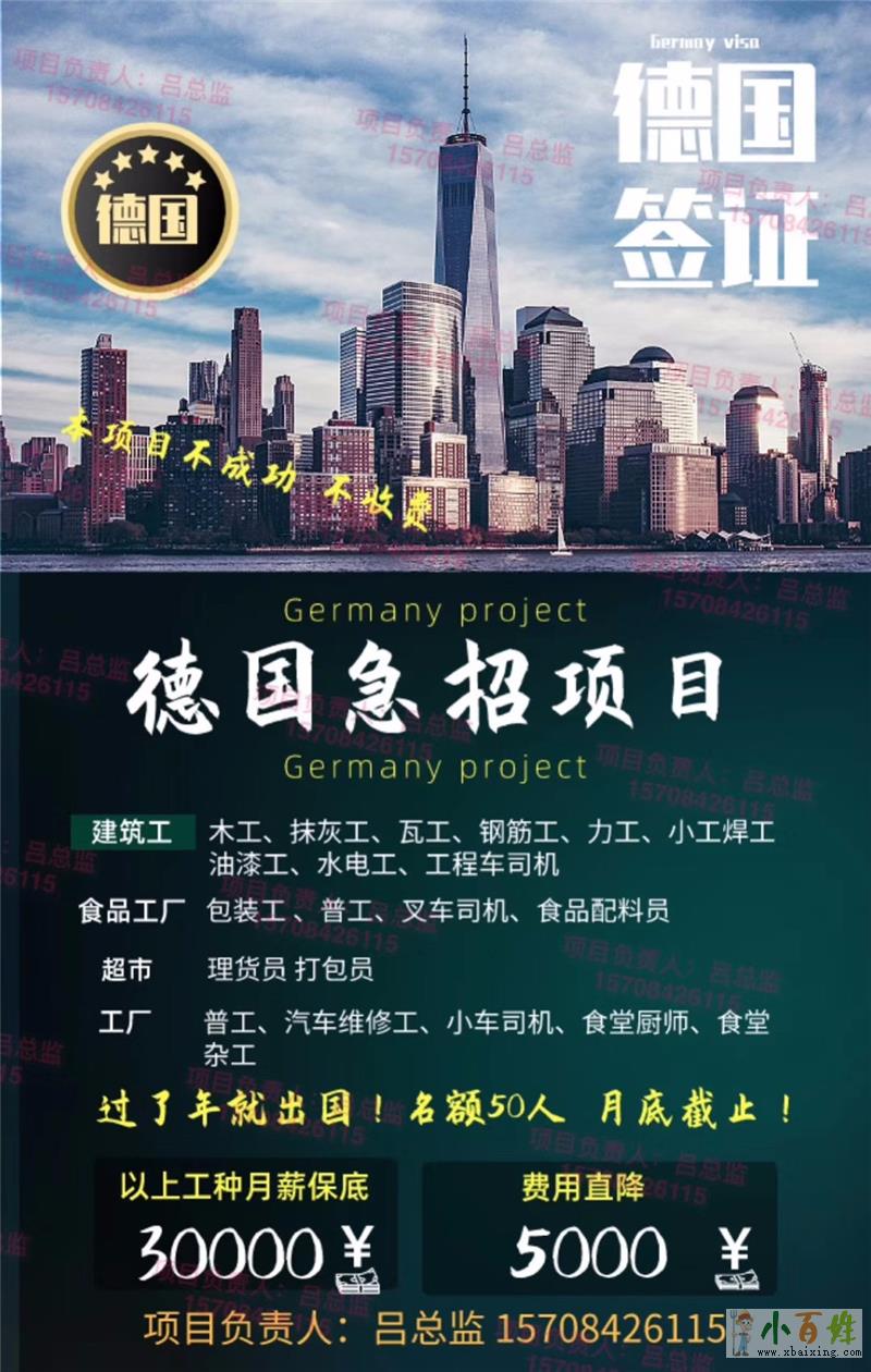 公司宗旨:诚实守信,共创双赢,成功之路,你我同行(本公司各大项目不会英语均可)招聘项目:澳大利亚、新西兰、丹麦、英国、以色列、比利时、日本、挪威、瑞典、加拿大、德国、瑞士建筑工:木工、瓦工、钢筋工、油...